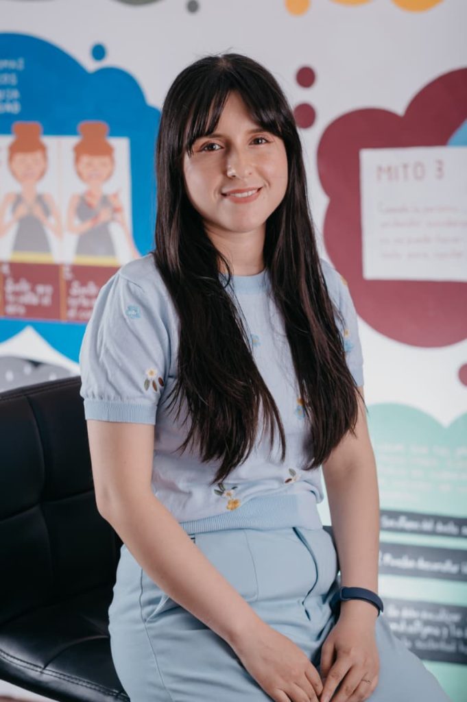 Socia y Sub-directora de Sentido. Psicóloga licenciada por la Universidad Peruana de Ciencias Aplicadas (UPC). Terapeuta Trascendente Relacional por Sentido. Terapeuta formada en el entrenamiento básico de EMDR por EMDR Perú y EMDR Institute. Facilitadora del Entrenamiento en Suicidología y Habilidades Específicas de Prevención del Suicidio para Gatekeepers.